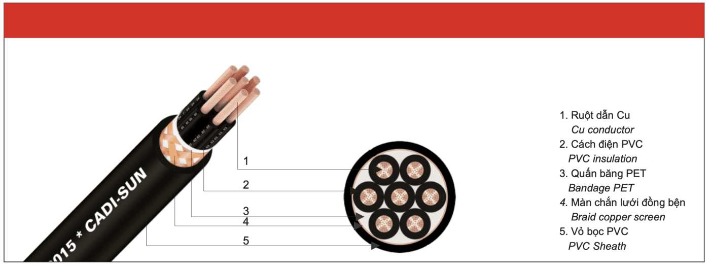 CÁP ĐIỀU KHIỂN CÓ LƯỚI CHỐNG NHIỄU – Cu/PVC/SB/PVC – 300/500V